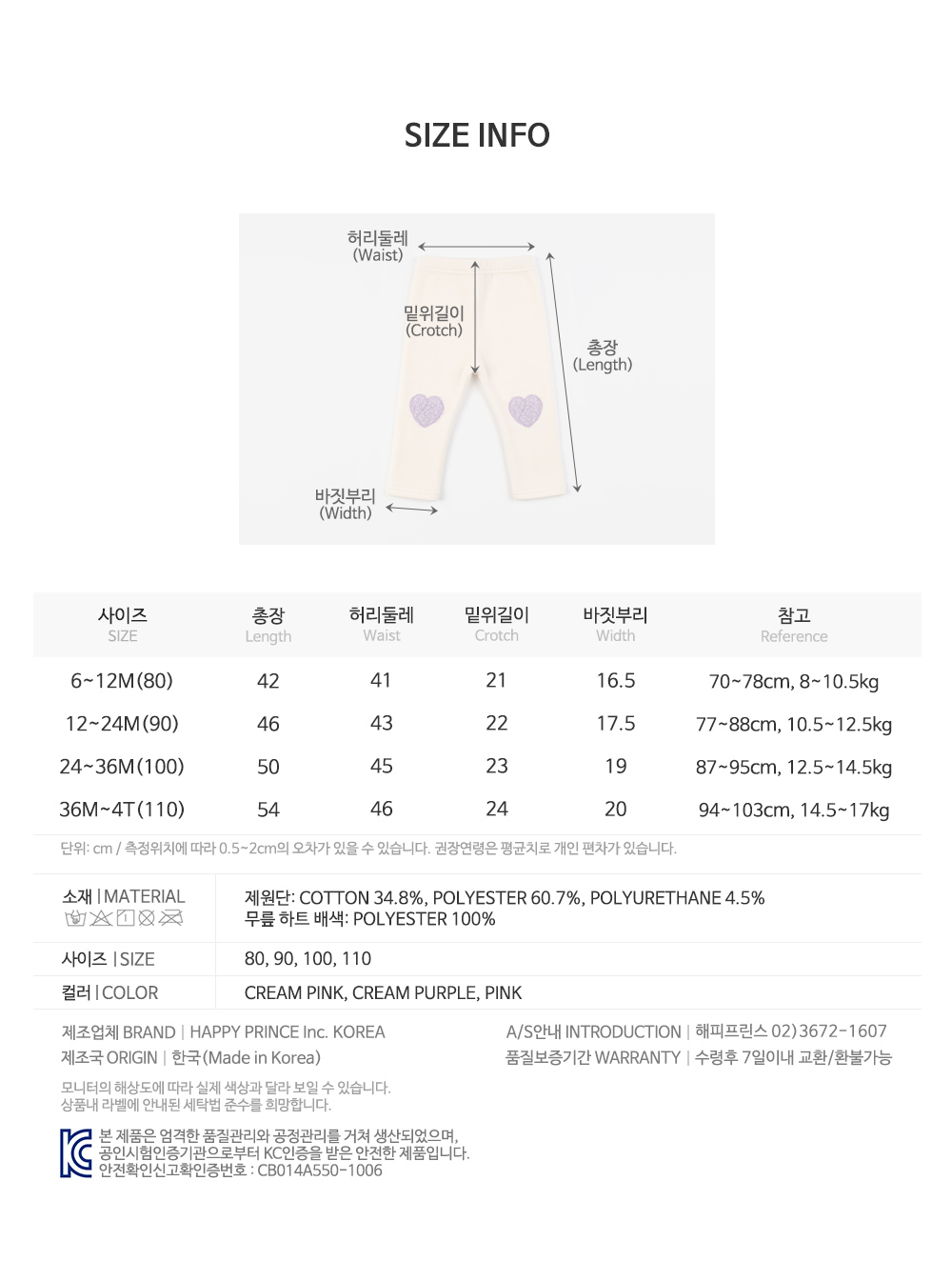 韓國 Happy Prince - 愛心補丁 長褲 冬